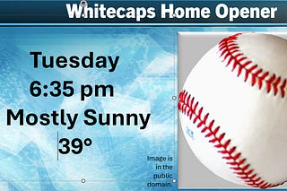 Sunny, but Cool for the Whitecaps Home Opener This Evening