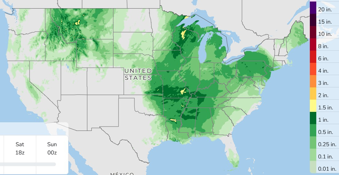 Here’s forecast rainfall for the next 3 days. For West Michigan, our rain will come in the form of showers and non-severe thundershowers Friday into Friday night. The weekend looks dry and pleasant.