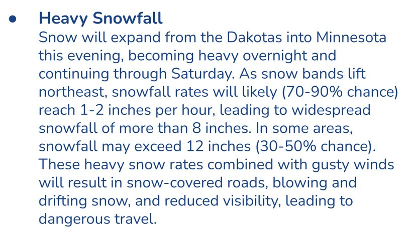 This is the snowfall forecast from the Weather Prediction Center. The orange band is 12” of snow. Snow amounts will be lower as you head southeast, where some of the precipitation will fall as rain/freezing rain. WPC says: