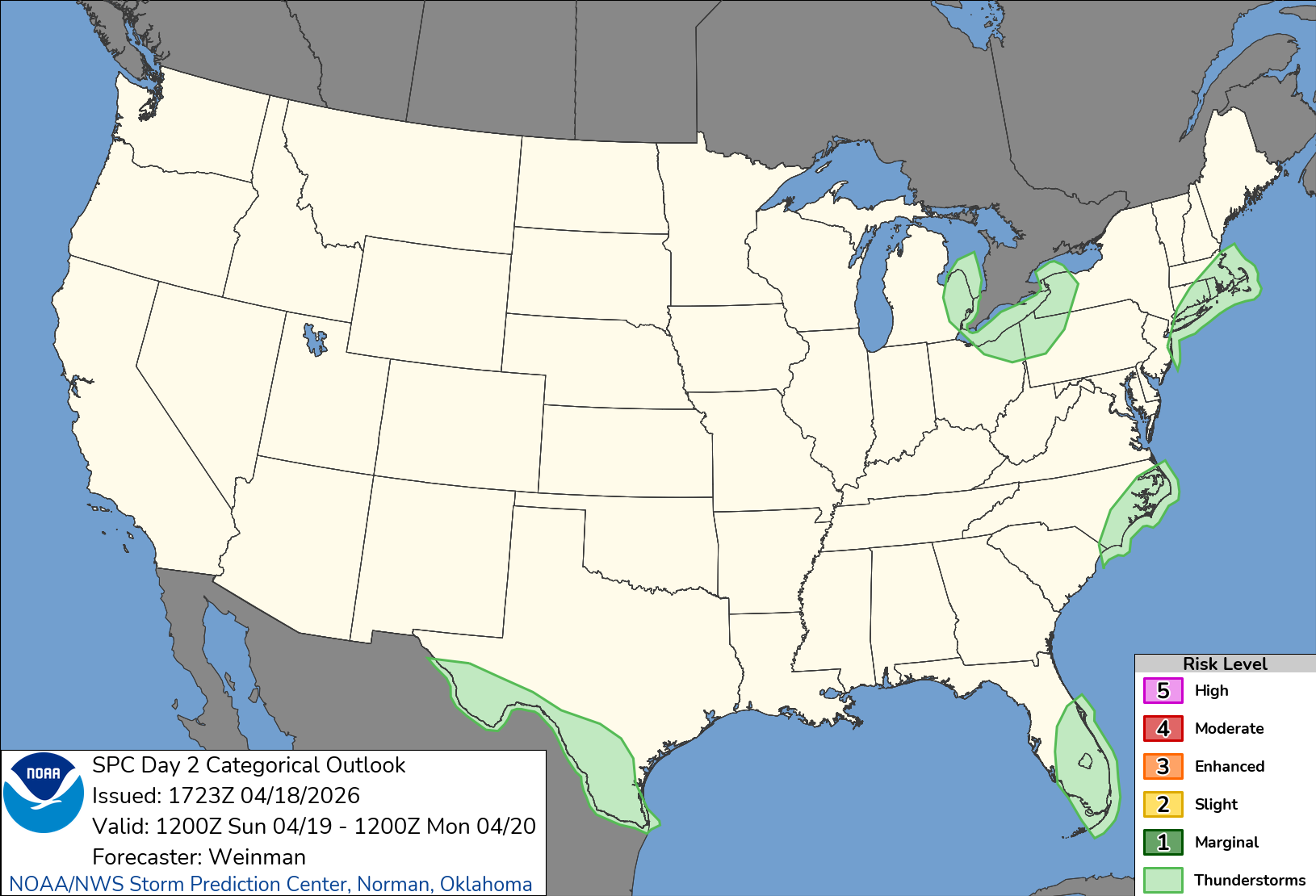 This is the Severe Weather Outlook for this Sunday. SPC is forecasting no areas of severe weather today. There are five areas where General Thunderstorms are possible, including the Thumb area of SE Michigan.