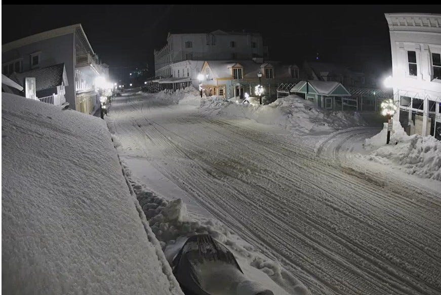 Here’s another sign of spring. Either late Thursday or Friday, then took down the Christmas tree that was in the middle of Main Street on Mackinac Island. Lots of snow there. Not too far to the north, S. Ste. Marie has had 144.4” of snow this winter. That’s 49.8” above average-to-date. Tahquamenon Falls has had 183.4”. Sometime in March, they’ll like join the 200” Club.