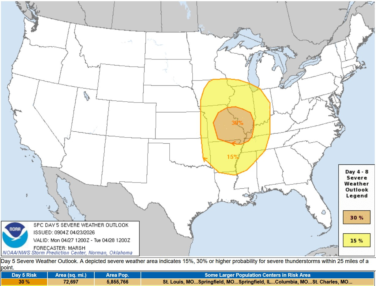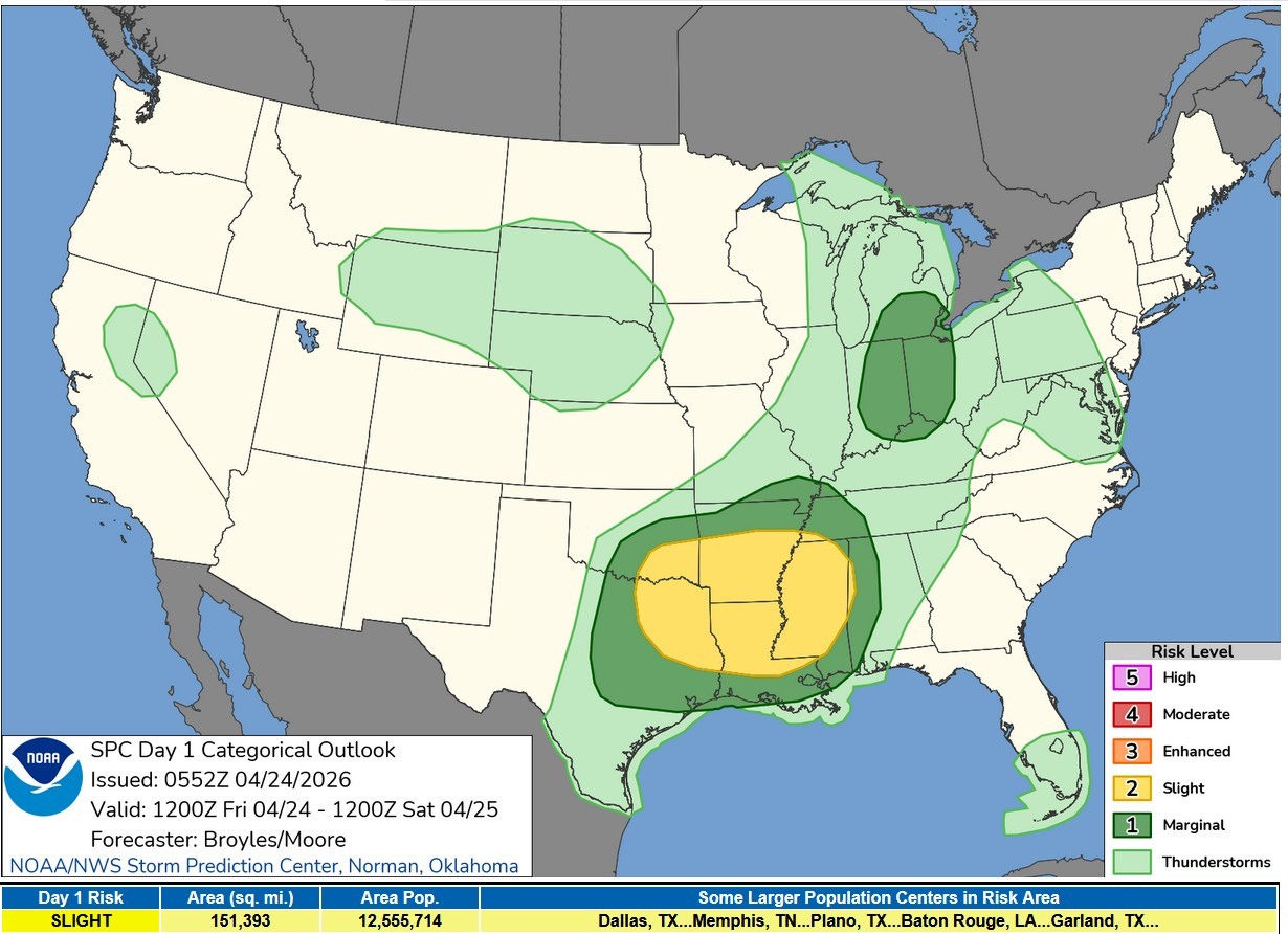 Here’s the Severe Weather Outlook Map from the Storm Prediction Center for this Friday. SPC has added a Marginal Risk Area for southern Lower Michigan away from Lake Michigan and for much of Indiana and western Ohio.