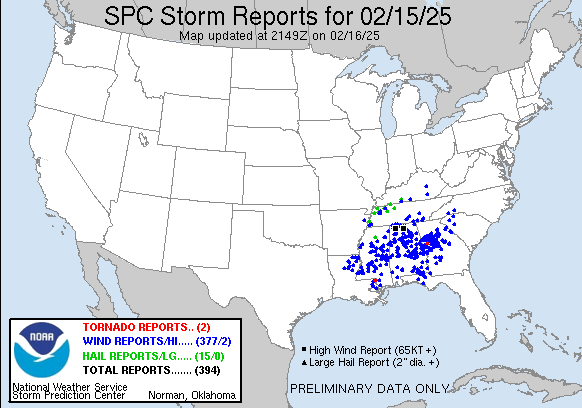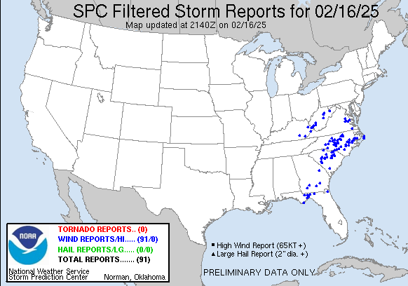 Here’s the Severe Storm Reports from Sunday/Sunday night (16th) from the Storm Prediction Center.