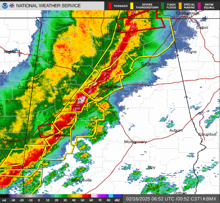 This is what the line of strong to severe storms looked like around 2 am Sunday morning. Birmingham (where my youngest daughter lives) reported two gusts to 48 mph and 0.3” of rain in just 3 minutes!