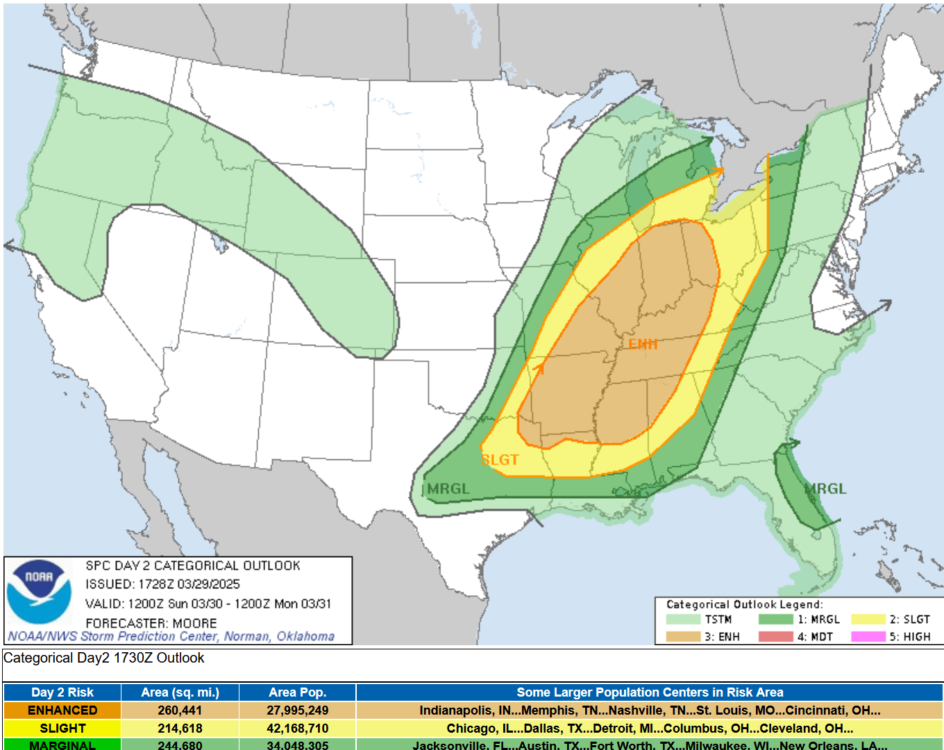SPC also says: "...convection may evolve into one or more bands of organized storms with embedded rotation, with risk for more widespread strong/damaging gusts, in addition to embedded tornadoes, as the convection shifts across Indiana/southern Lower Michigan, and eventually western Ohio through the evening and into the overnight."