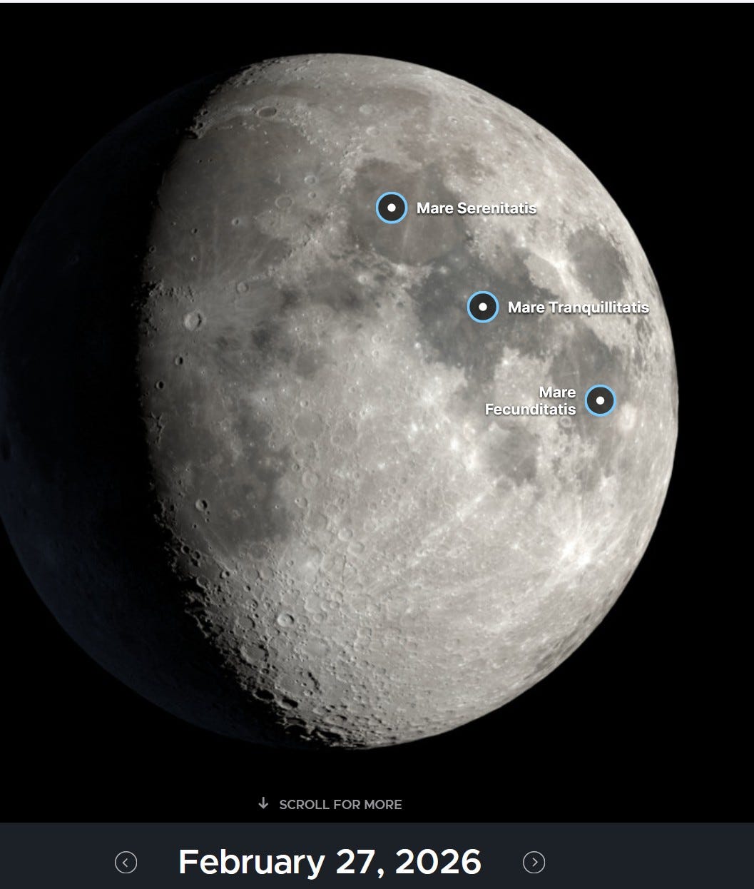 We have a total lunar eclipse early Tuesday morning. The moon will be moving through the shadow of the Earth, giving the moon a dim, reddish appearance. The eclipse starts at 4:50 am (though you won’t notice much difference then). Maximum eclipse is at 6:33 am. By then we’ll be seeing some twilight. The moon sets in the west before the eclipse ends. A full moon with an eclipse is called a “Blood Moon”. The full moon of March is the “Worm Moon”. (pics. from NASA)