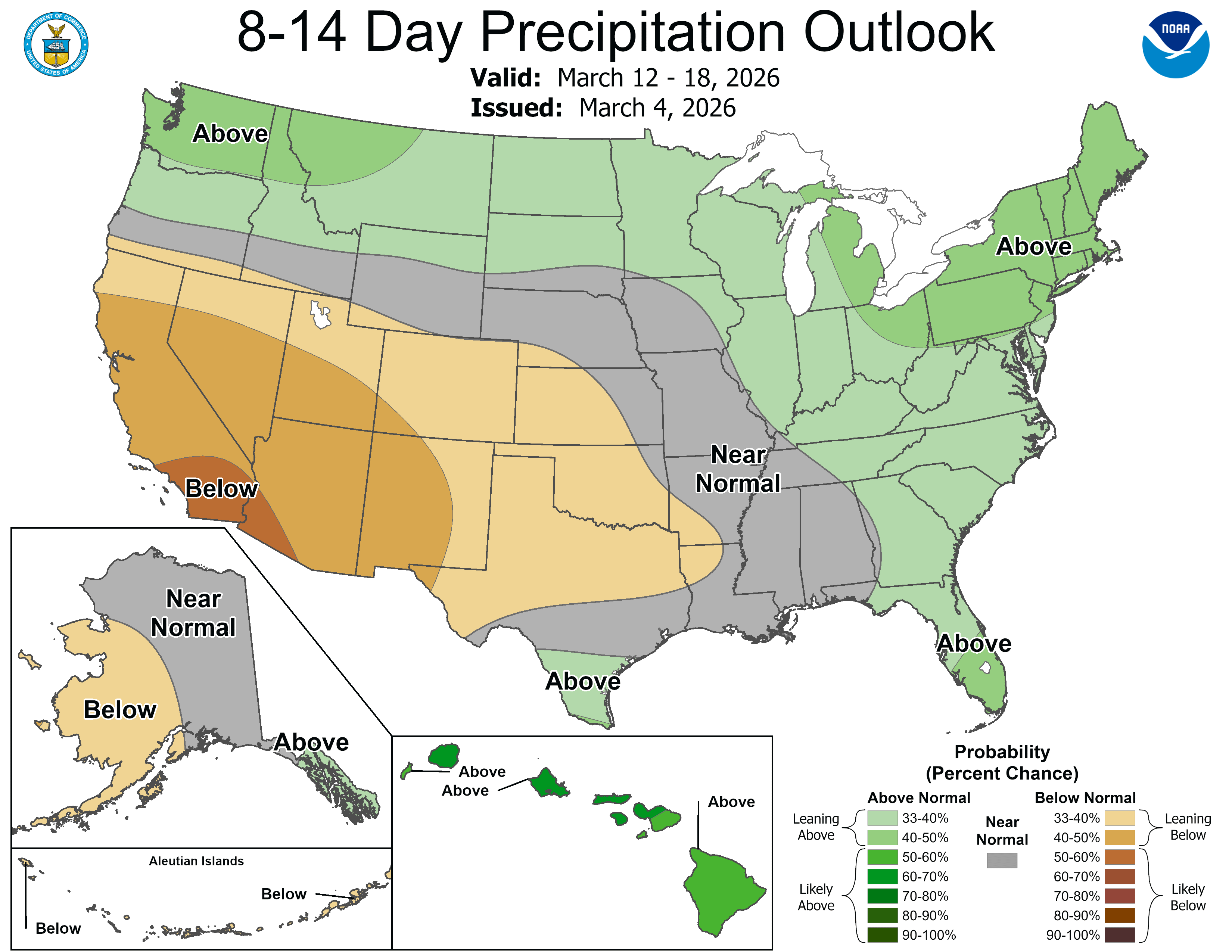 The 8-14 day precipitation outlook is for above average in the Great Lakes and at least a small part of that could be snow. We average about 7” of snow in March and 2” of snow in April.