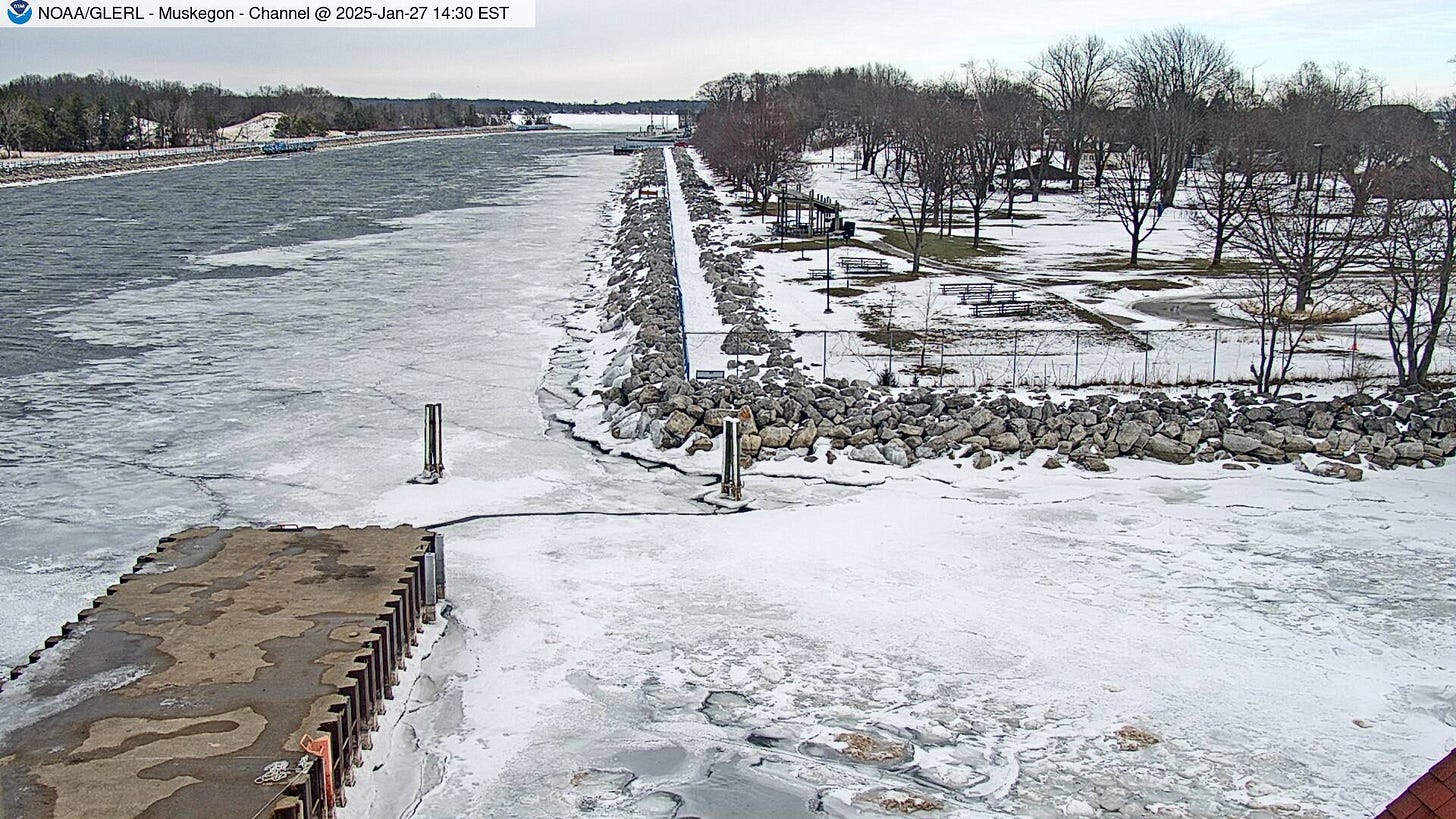 This is the Muskegon Channel Monday afternoon. The strong winds broke up some of the ice in the channel. We had 74% of possible sunshine in Grand Rapids on Monday, making it the sunniest day in nearly a month, since Dec. 30. We had a high temperature of 39 in Grand Rapids, making it the 2nd warmest day of the month. You can see in the picture above the that the snow was starting to melt a little bit in the park in the upper right of the picture. Muskegon and Benton Harbor tied for warmest spots in Michigan on Monday with both cities reaching 40 degrees.