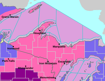 And the central and western U.P. have a Winter Storm Warning for freezing rain and some snow. There could be as much as 6” of snow up toward Copper Harbor. The purple-colored counties in Wisconsin are under an ice storm warning.